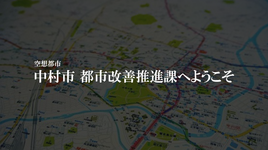 スライドのキャプチャ画像「空想都市 中村市 都市改善推進課へようこそ。」