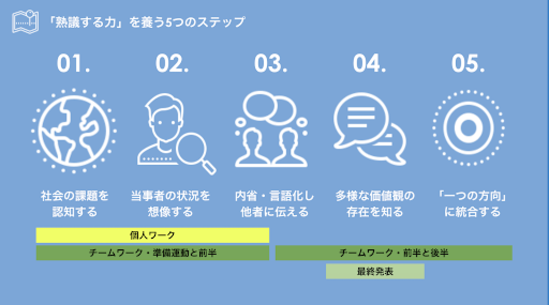 コロナ禍での開催となった2021年、オンラインの比重が高い中での実施を余儀なくされる中、長年継続してきたプログラムだからこそのマンネリ化や、現地へ足を運べないことによる現場課題の理解の難しさといった部分に悩みを抱えていたご担当者さまと協業し、空想都市中村氏都市改善推進課のワークショップを用いることで研修全体をさらに本質的なものに近づける取り組みを行いました。