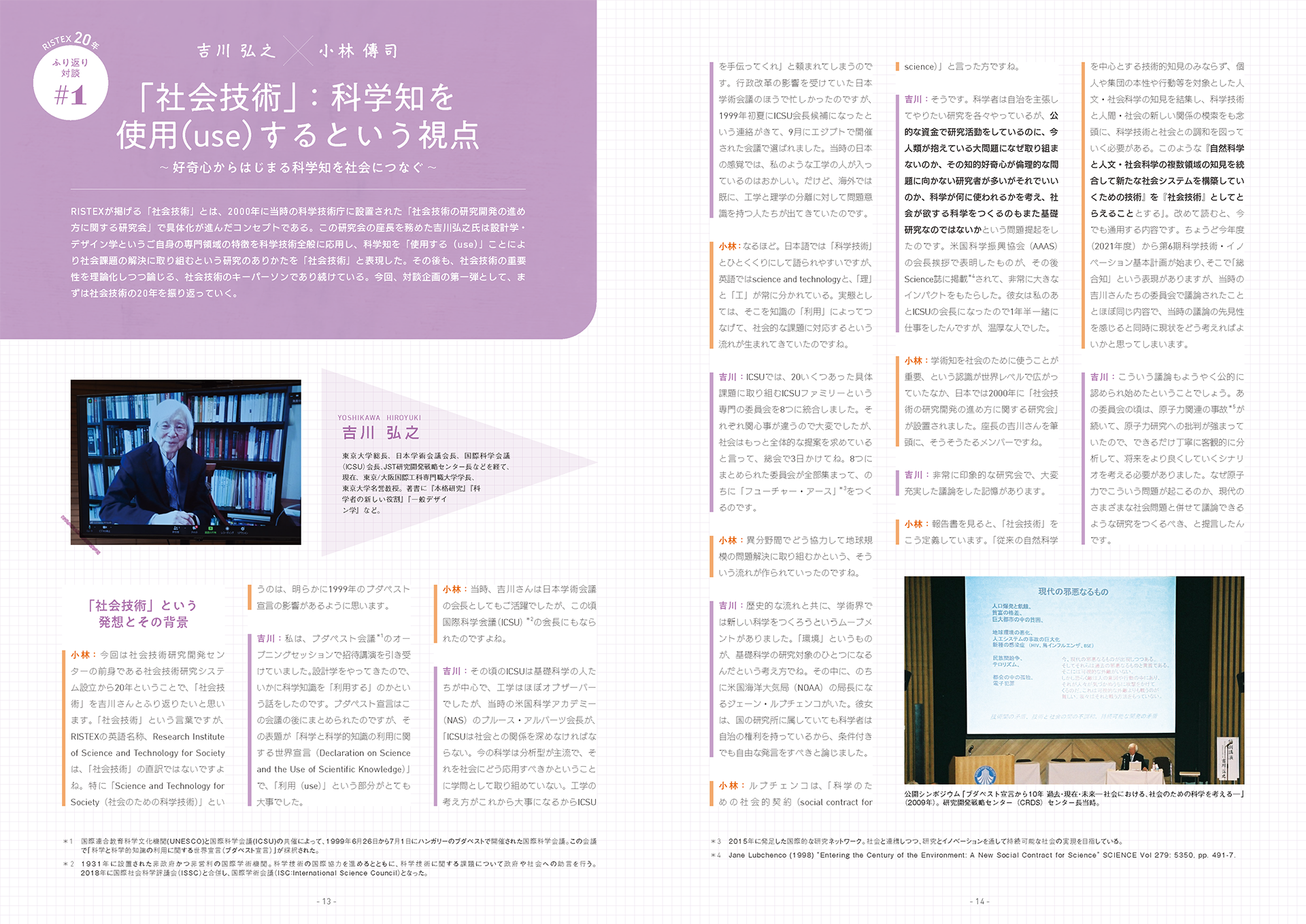 20周年を迎えた国立研究開発法人科学技術振興機構 社会技術研究開発センター(RISTEX)のこれまでをふり返る冊子の制作ディレクション・編集・デザインを担当しました。