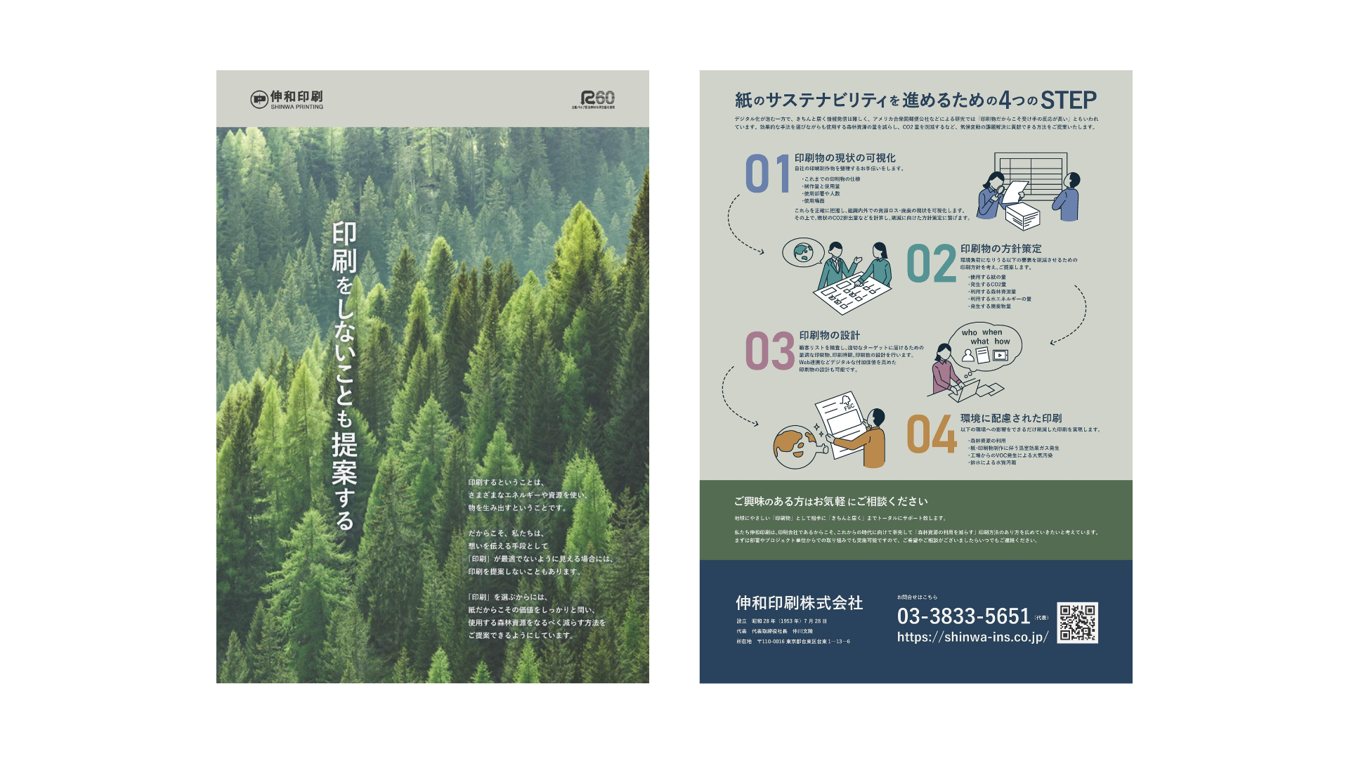 伸和印刷が推進する「紙と印刷のサステナビリティ」の取り組みについて、今後実践する企業を増やすための伴走支援として、WEBサイトのジャーナル執筆・チラシ制作・事例づくり(パートナー企業とのプロジェクトマネジメント・ディレクション)、そして外部メディアへのPR戦略とアプローチを行いました。